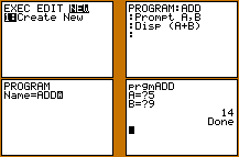 2. Select NEW, enter the name "ADD" and begin entering the program line by line.